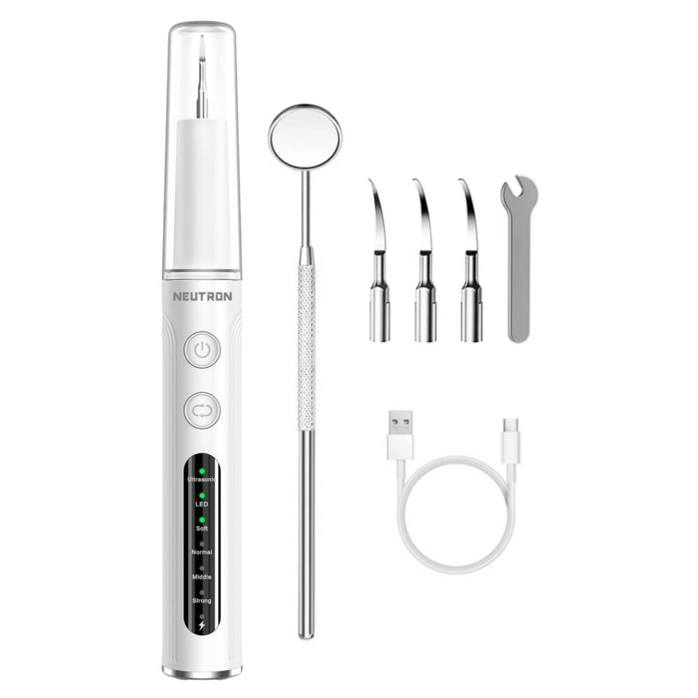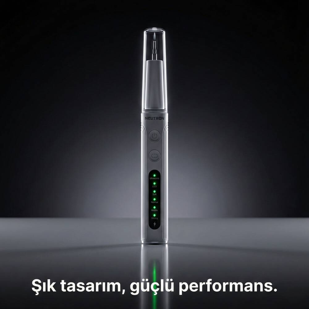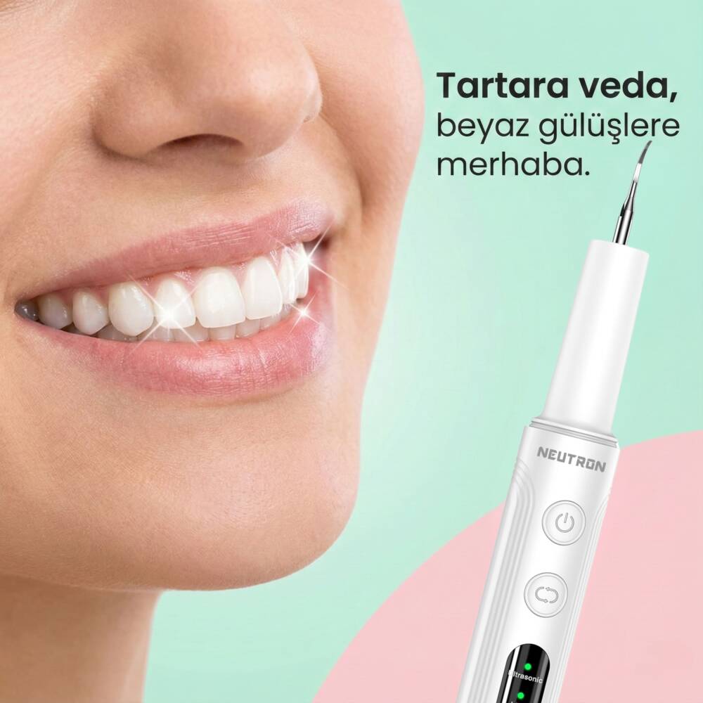 Diş fırçalamanın yetersiz kaldığı anlarda, inatçı tartar, plak ve diş lekeleriyle savaşmak için profesyonel bir dokunuşa mı ihtiyacınız var? NEUTRON Ultrasonik Diş Temizleyici, diş hekimi randevularınız arasında ağız hijyeninizi en üst seviyede tutmanız için tasarlanmıştır.